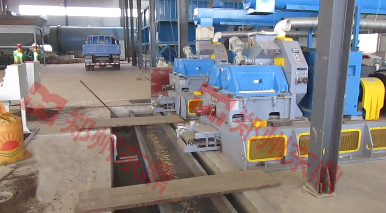 1,削片破碎系统。如果原材料是原木,秸秆,边角料等一些尺寸比较大的物料,压制颗粒之前,需要把原料削片破碎;